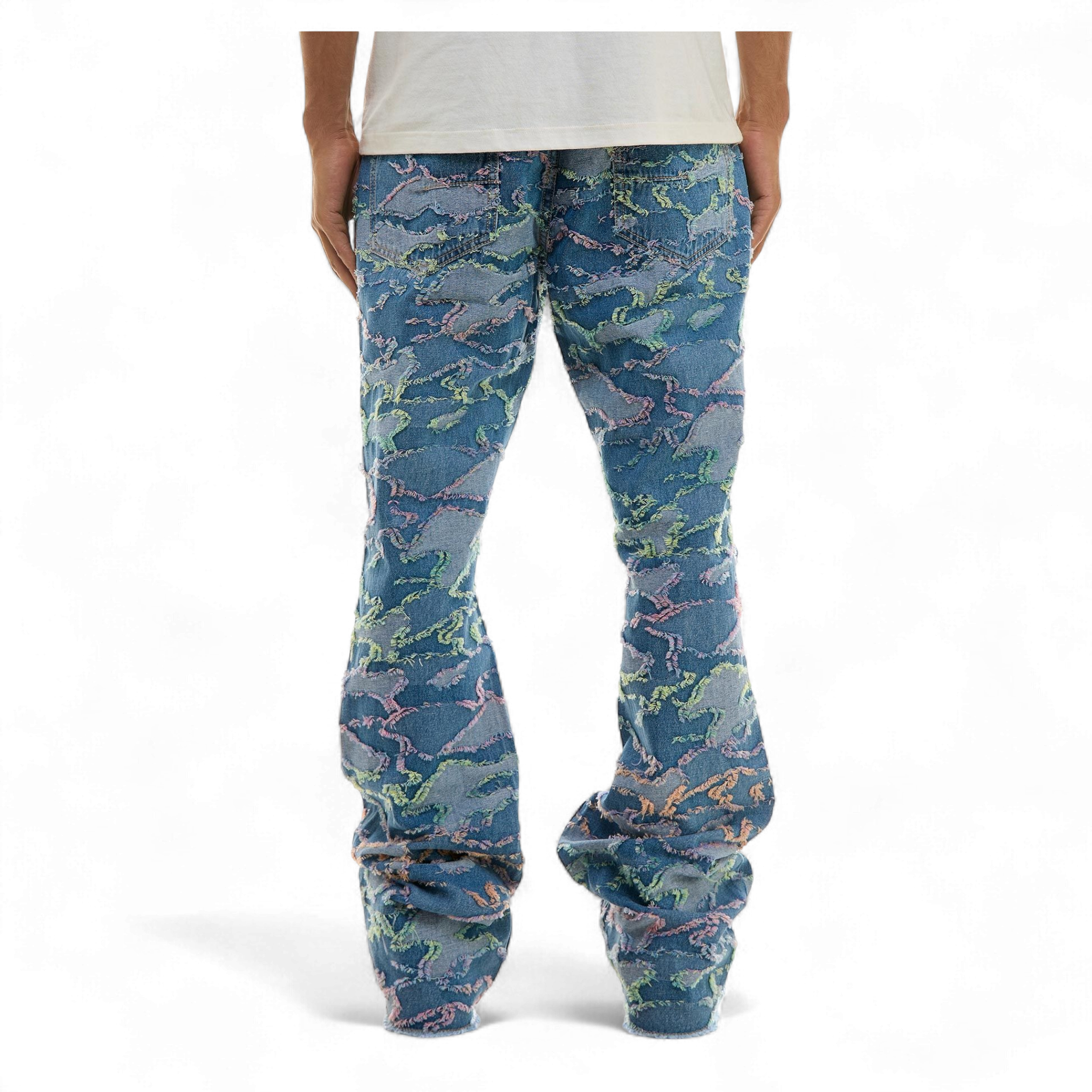 Hidden Treasures Ripped Camo Pattern Slim Flare Jeans