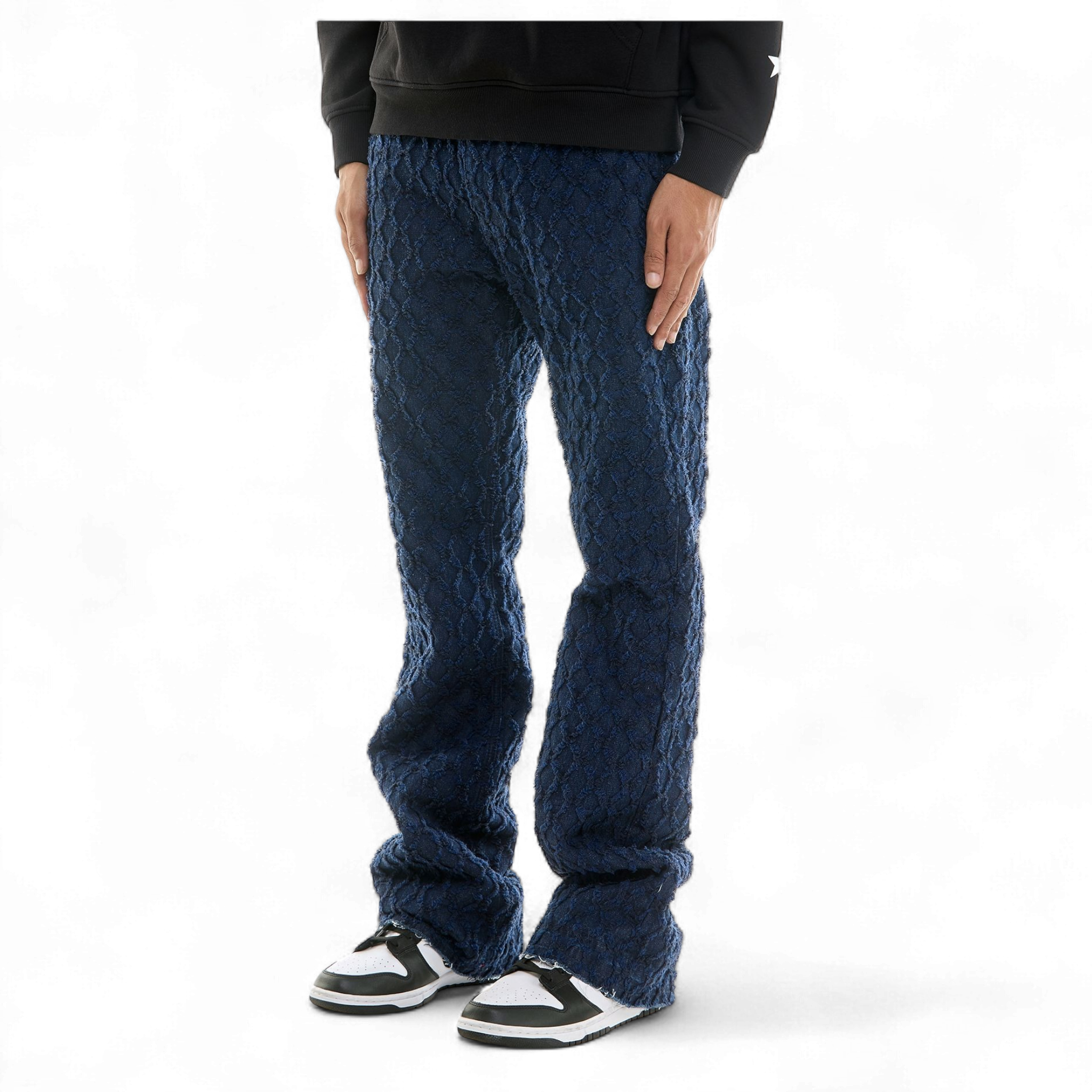Hidden Treasures Honeycomb Frayed Pattern Slim Flare Jeans