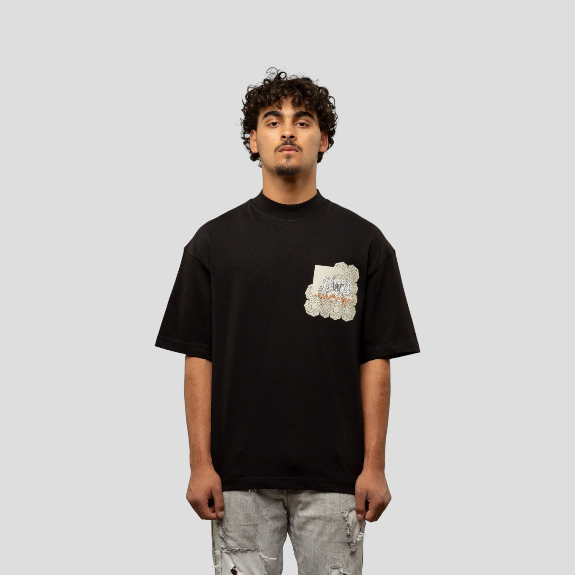 Embroidered and printed graphic on front and back