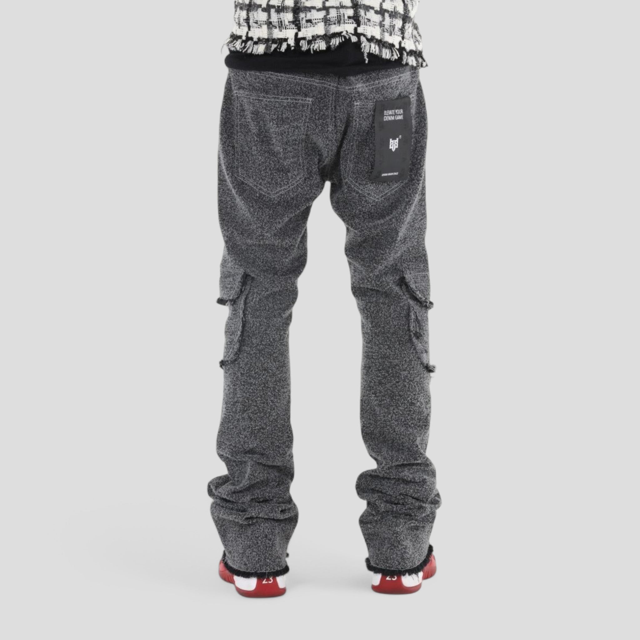 Step into a new lane of utility-driven streetwear with the Hidden Treasures Textured Stacked Slim-Fit Cargo Pants. Designed with a modern silhouette, these cargos bring together function, comfort, and elevated texture. The uniquely structured fabric adds depth and dimension, while the slim fit tapers through the leg and stacks naturally at the ankle, creating a clean, elongated look.
