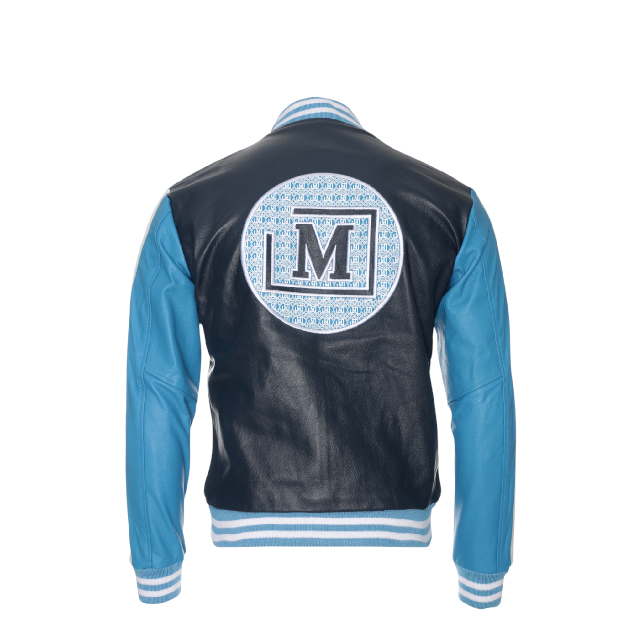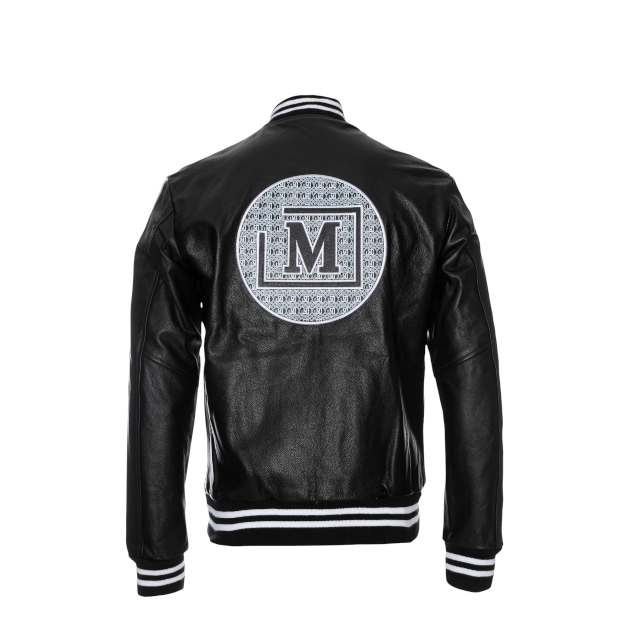 MDB Men's Leather Monogram Print Patch Jacket