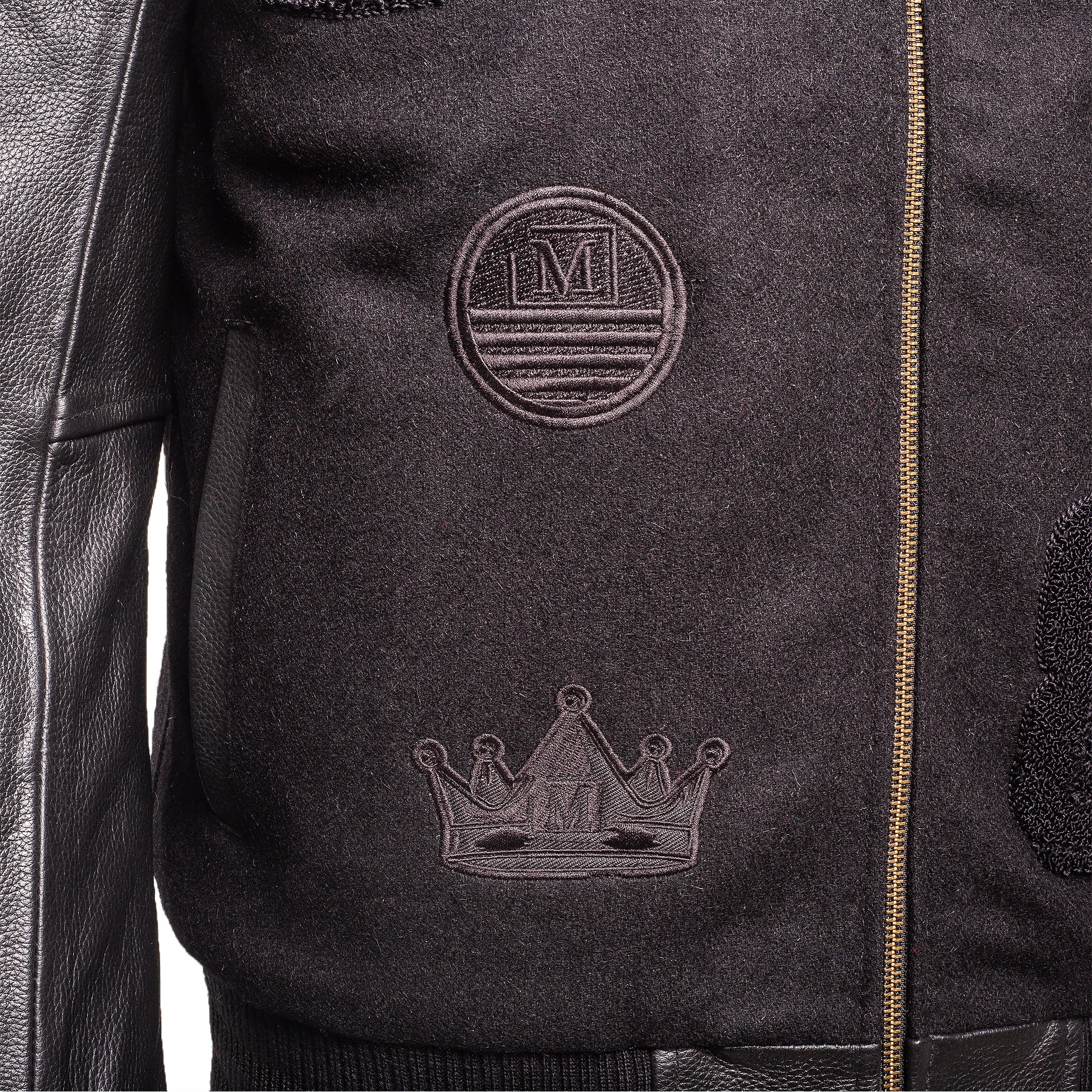 A full zip-down closure offers sleek functionality, while the thick quilted lining ensures warmth and comfort. Detailed embroidered artwork and signature MDB branding elevate the design, creating a bold yet refined statement piece. Finished with ribbed collar, cuffs, and hem, plus slanted front pockets for everyday utility.