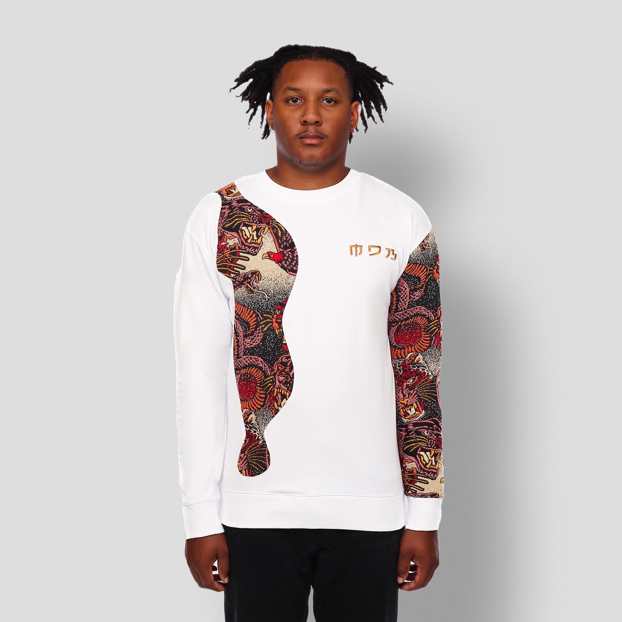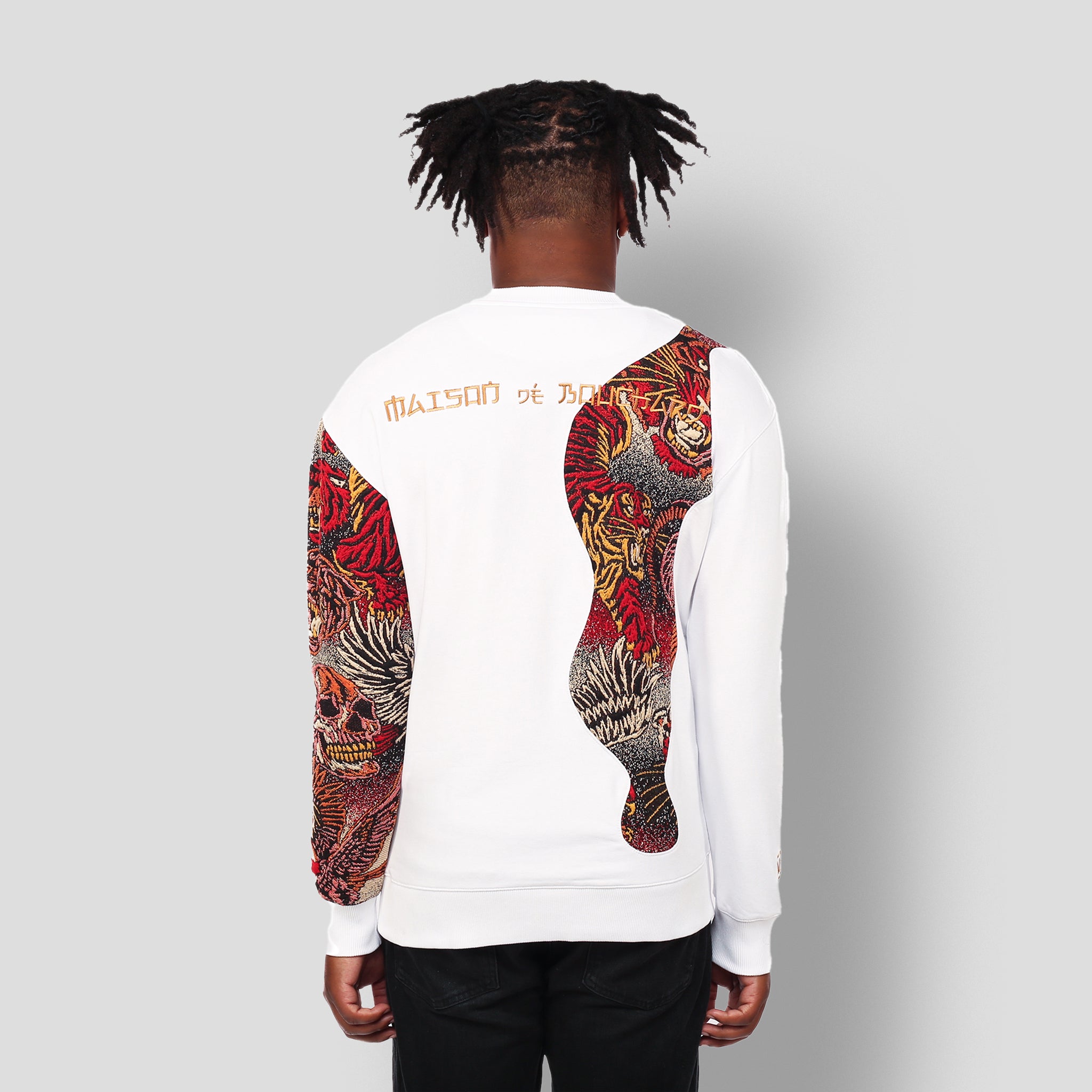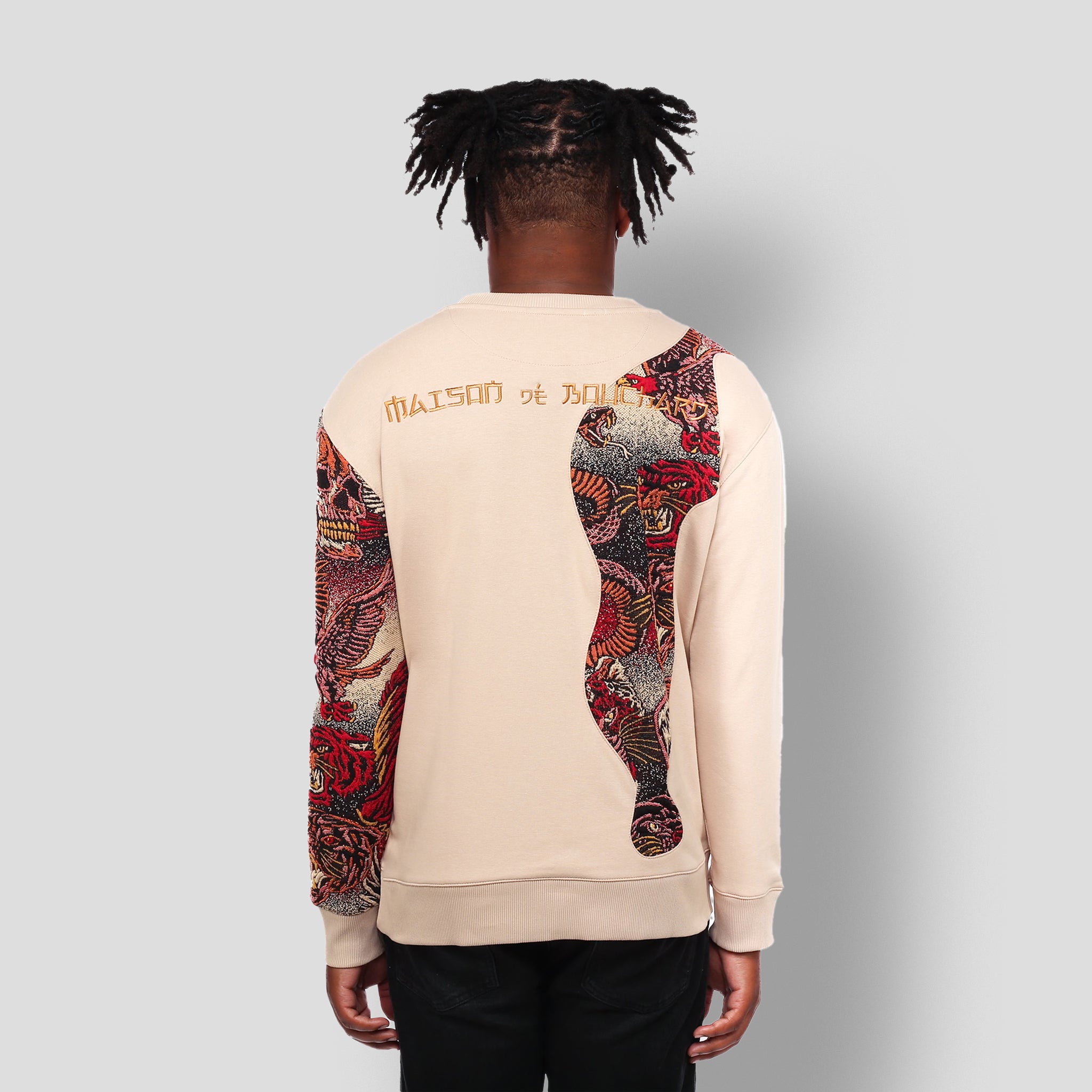 Crafted from a smooth, flexible cotton/elastane blend, this sweatshirt delivers soft warmth, breathable comfort, and a clean classic fit that layers effortlessly over tees or pairs perfectly with denim or joggers. The unique placement of the threadwork panels adds depth and personality, making this sweatshirt a signature piece for those who appreciate art-driven fashion.