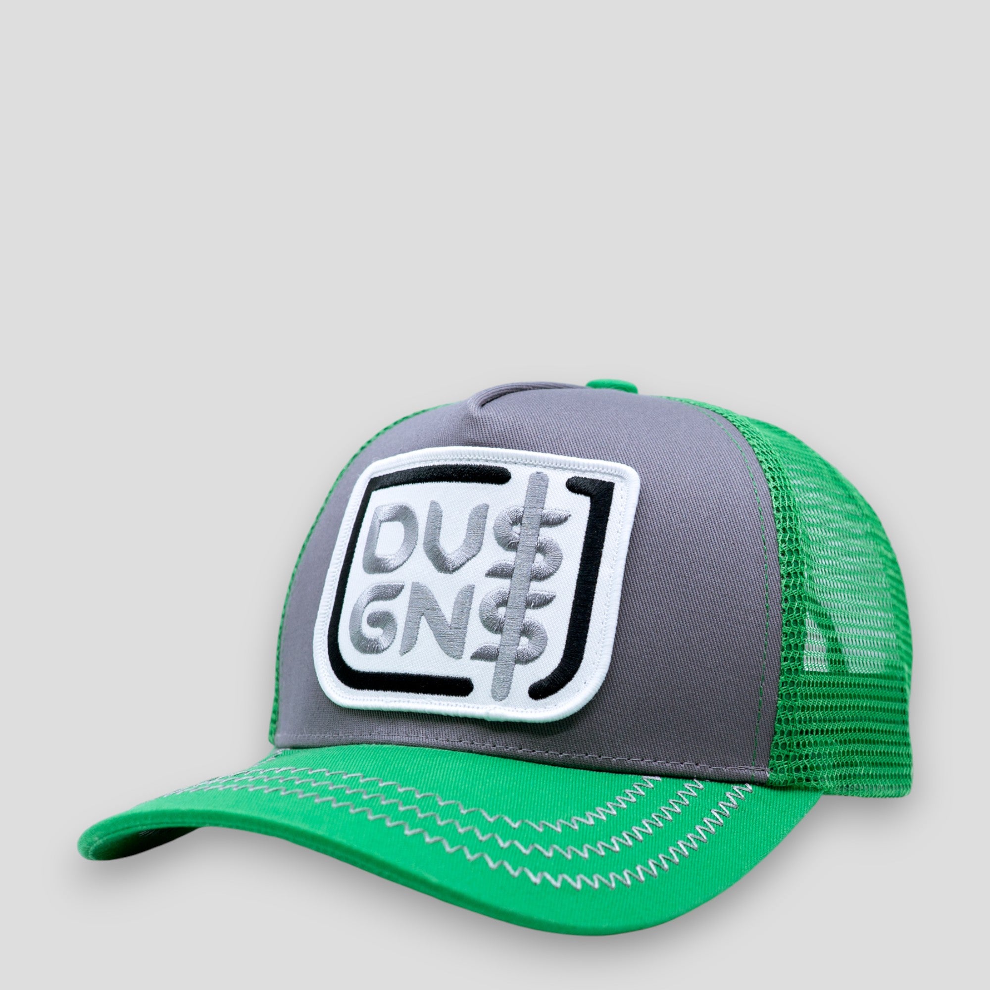 Devious Genius Patch Logo Trucker Hat – Green/Grey