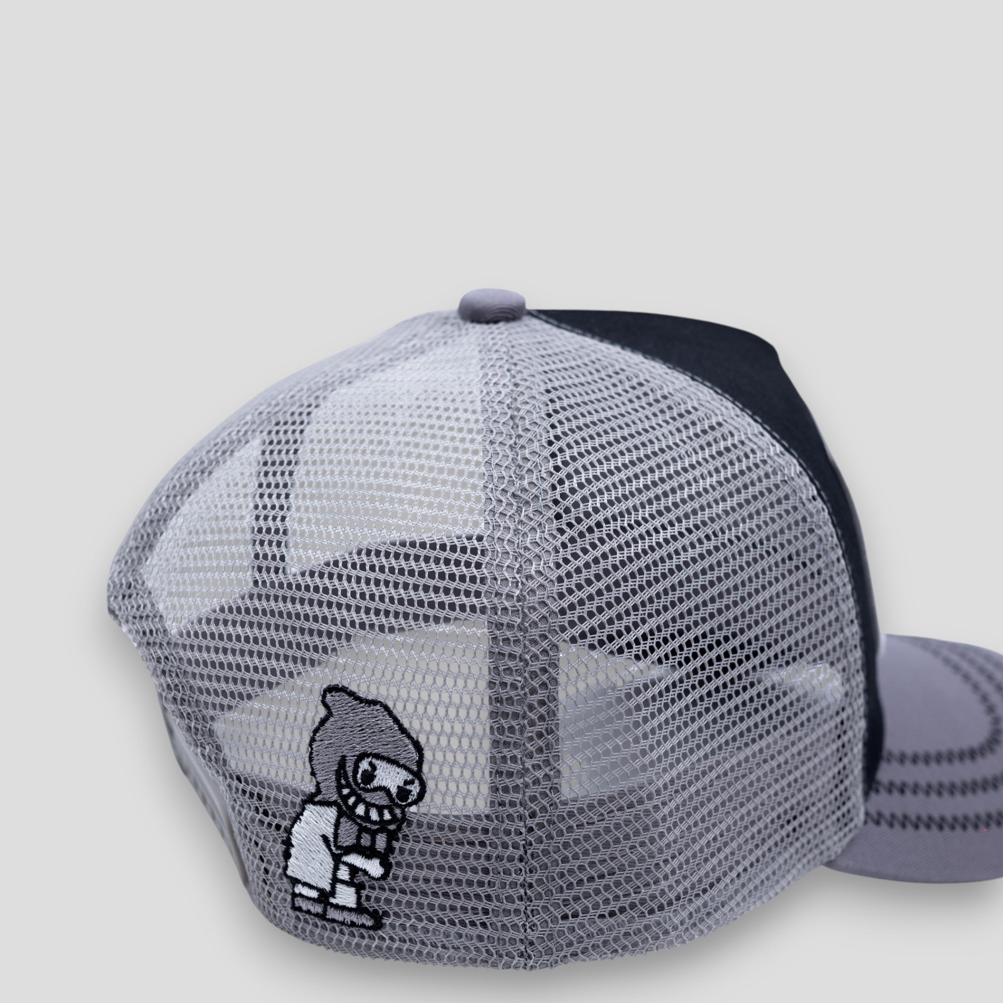 Sleek, modern, and versatile—the Devious Genius Patch Logo Trucker Hat in Black/Grey brings a refined edge to a classic silhouette. Featuring a bold embroidered patch and balanced neutral tones, it's an easy match for any wardrobe.