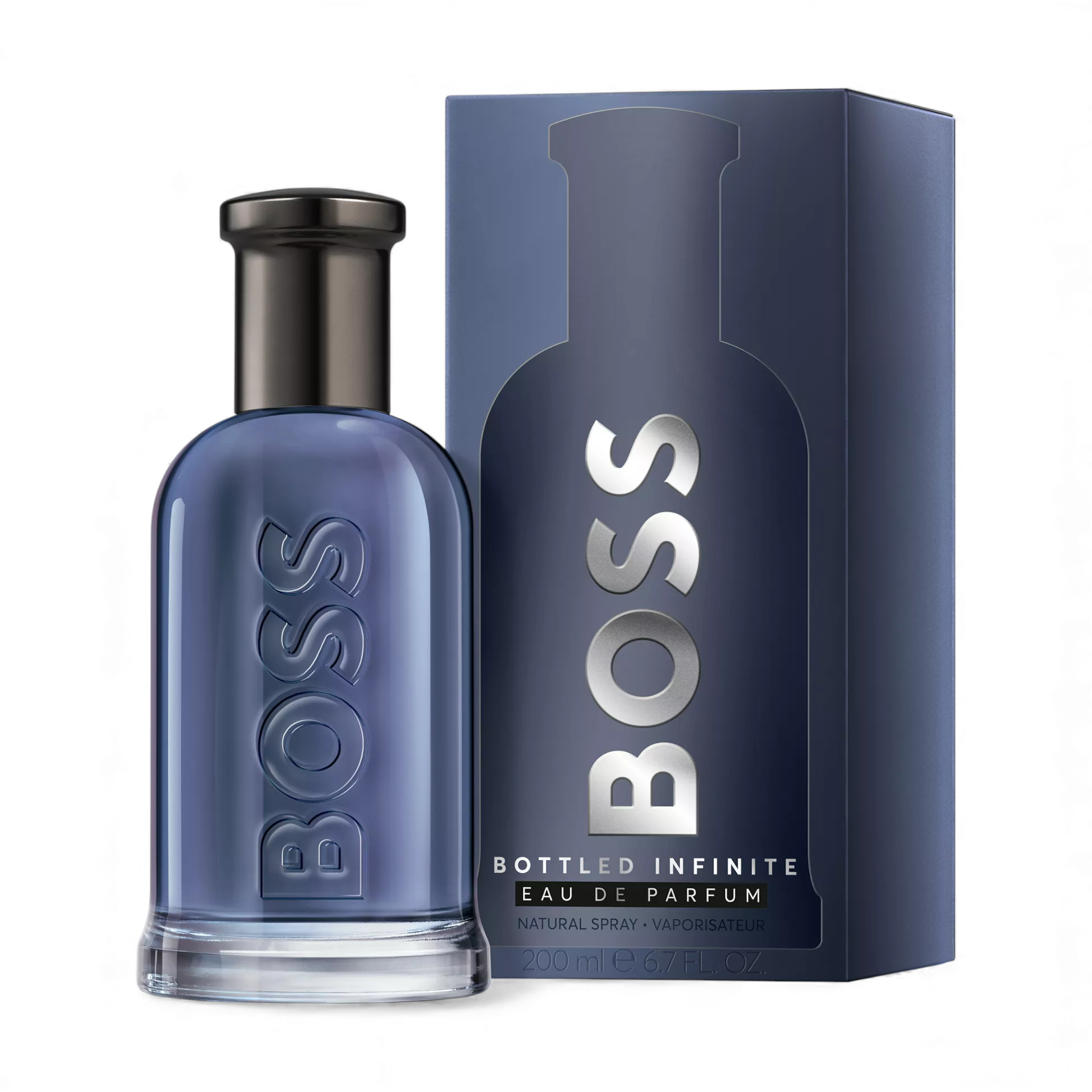 A 200ml bottle of BOSS Bottled Infinite eau de parfum, ideal for the modern man. This energizing and sensual scent combines the freshness of citrus with the intensity of aromatic and woody notes. The generously sized bottle is the perfect addition to any modern fragrance collection