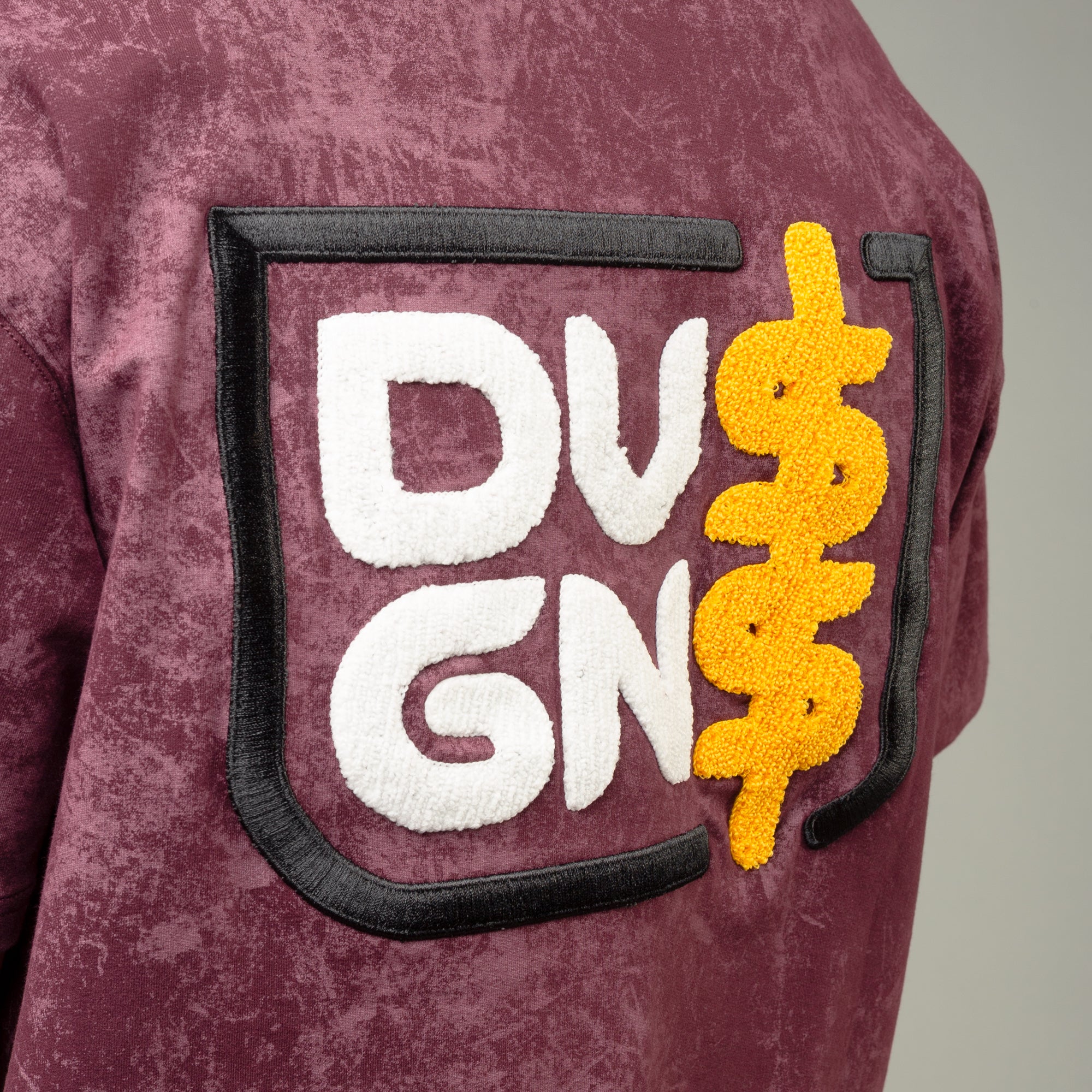 The front features a detailed embroidered DG character logo, adding personality and premium craftsmanship. On the back, a large chenille and embroidered logo delivers standout dimension and signature DG energy. Finished in a washed maroon tone, it brings a vintage-inspired edge to your wardrobe.