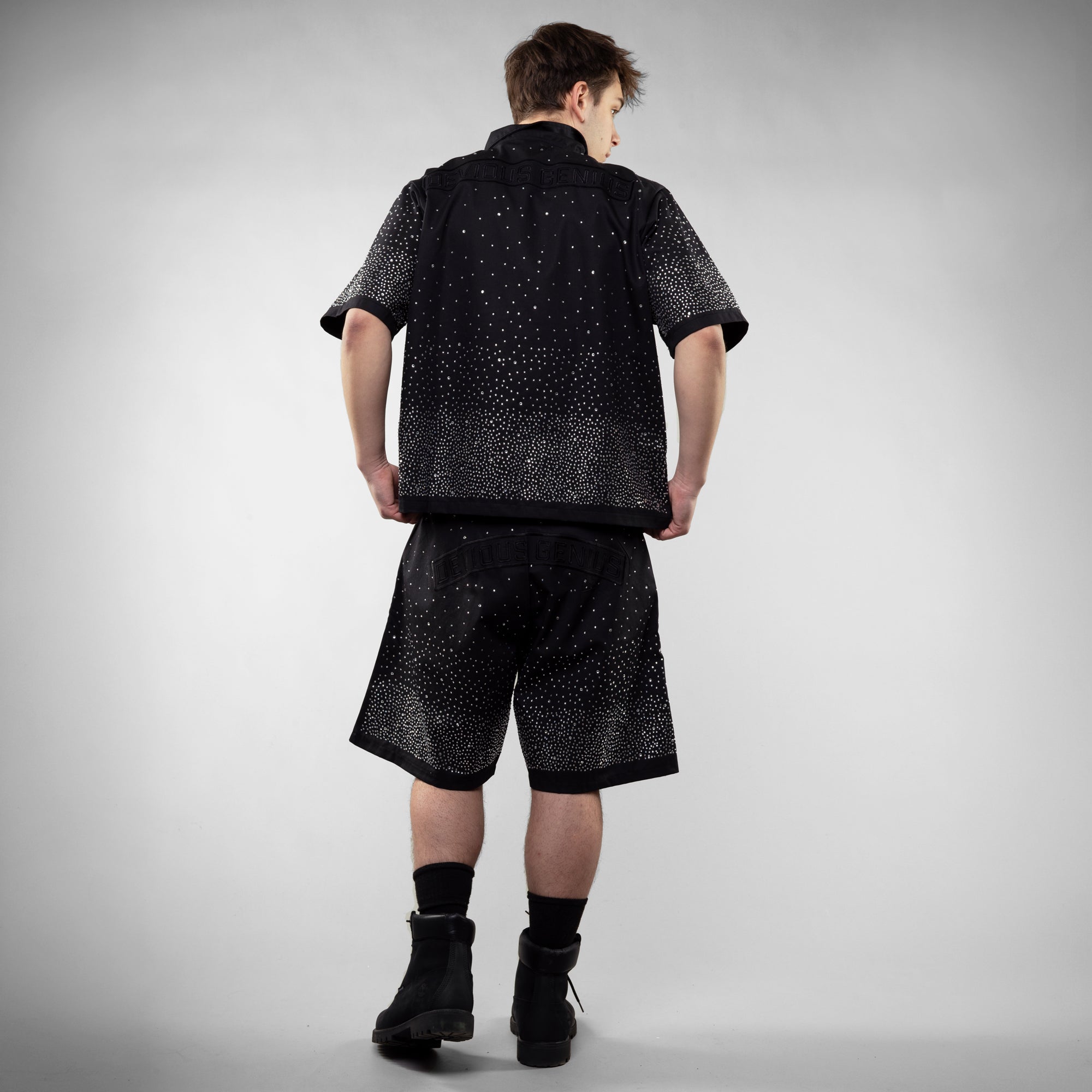 Complete your ultimate streetwear set with the Devious Genius Star Studded Shorts. Designed with an oversized fit and premium cotton/polyester blend, these shorts perfectly balance high-performance comfort with high-fashion luxury.