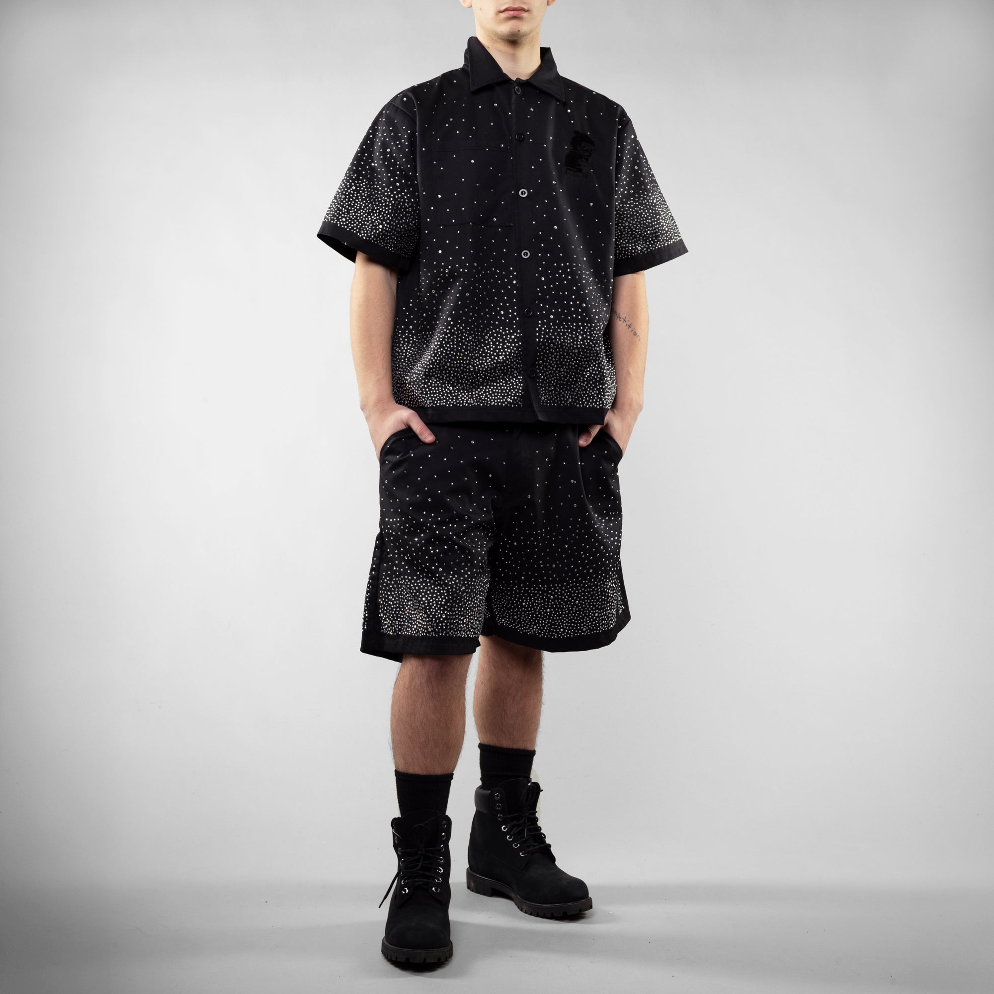 Whether you're hitting the court or the street, the Star Studded Shorts are the definitive statement piece. The unique clear-on-black colorway provides a striking contrast that pairs effortlessly with premium footwear.