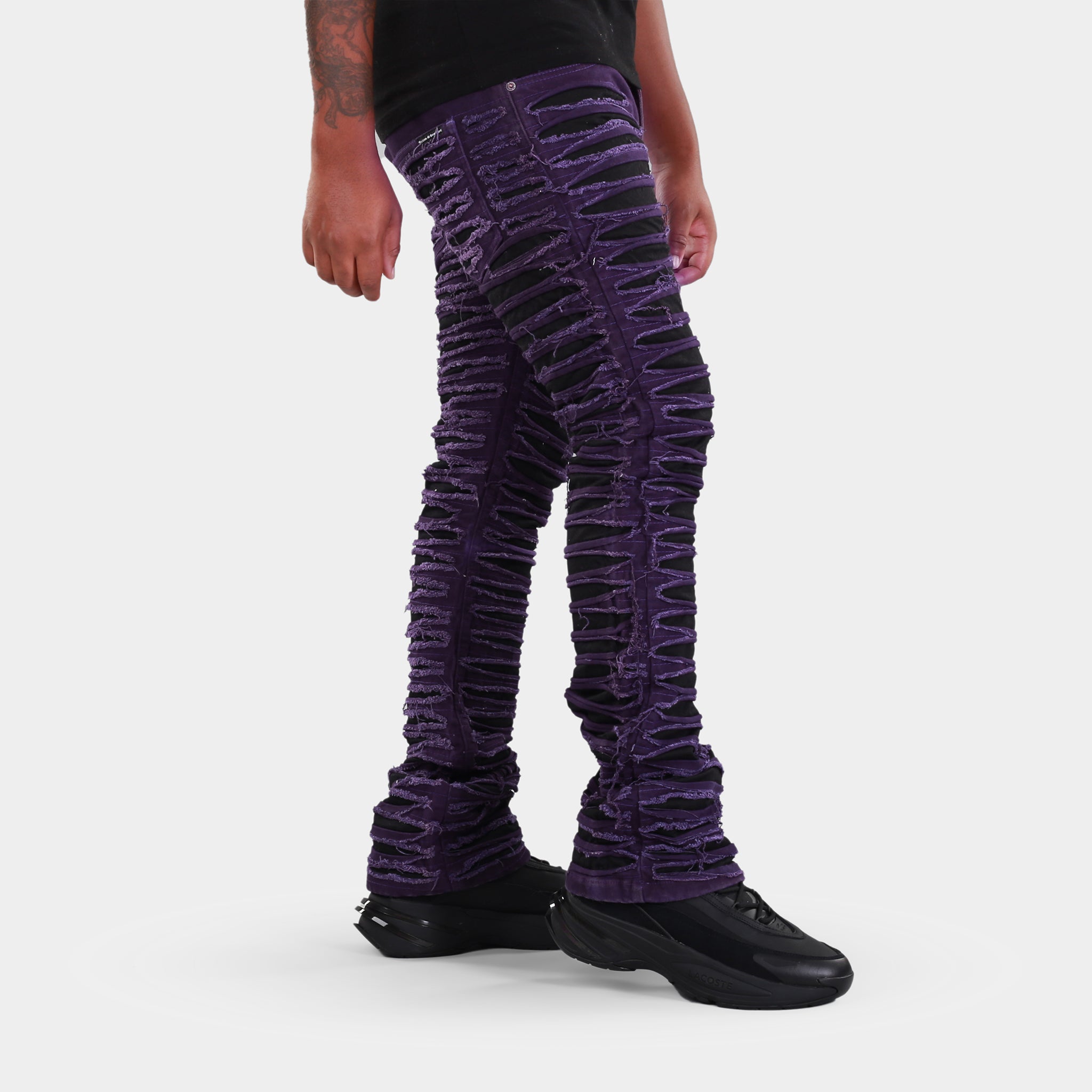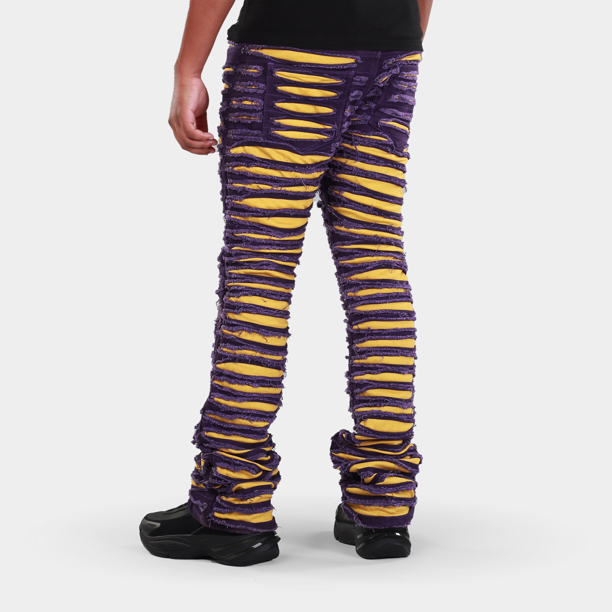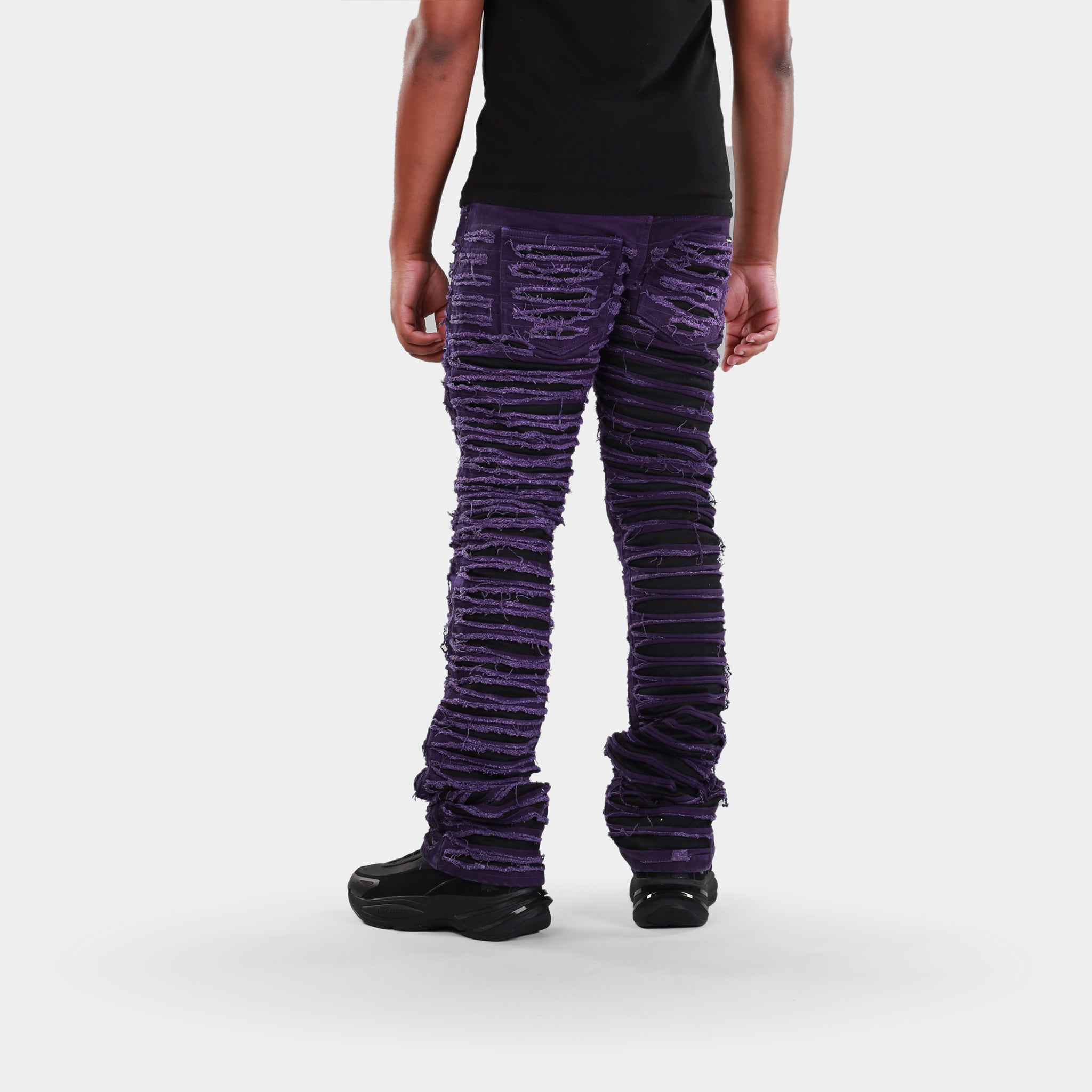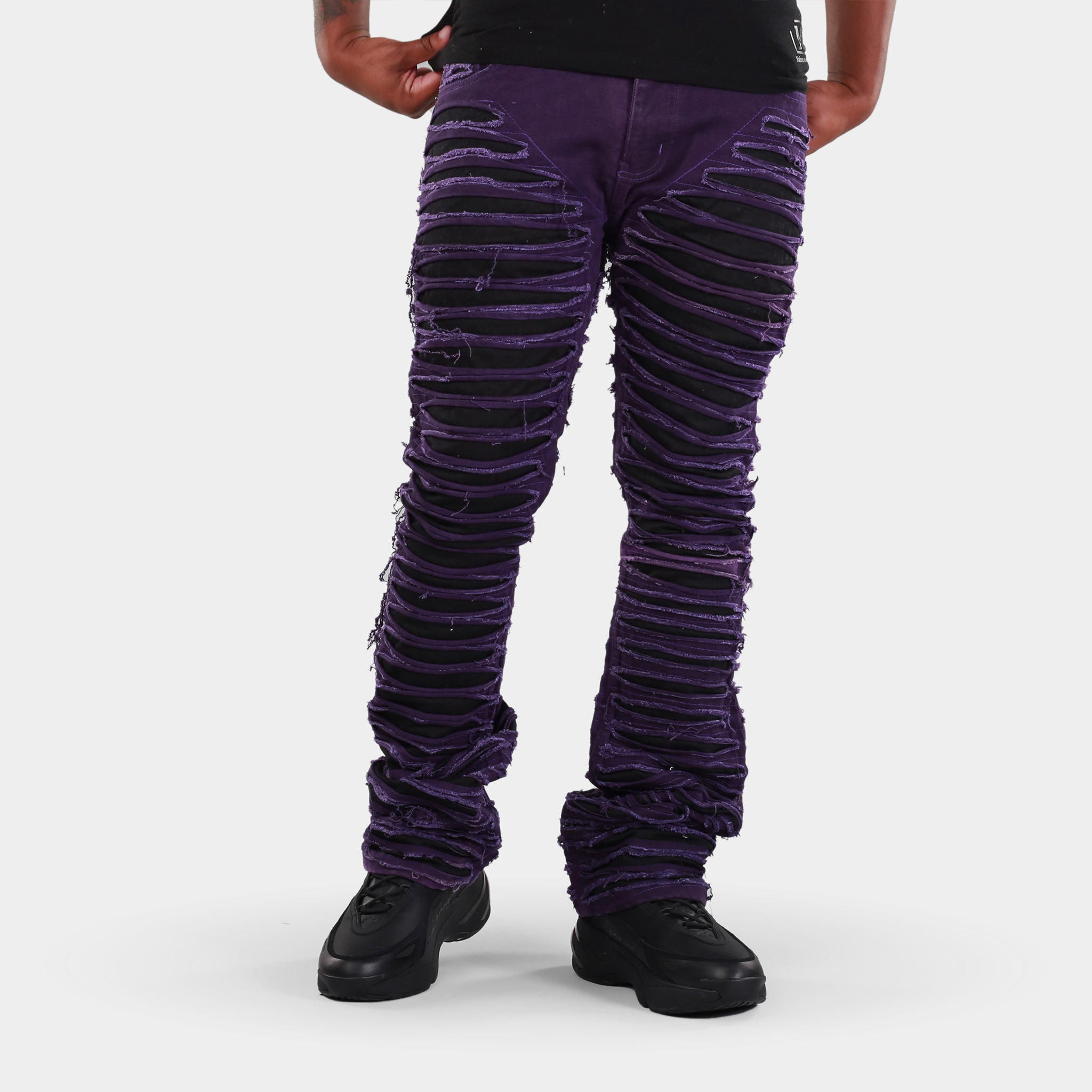 MDB Brand Men's Distressed Dual Color Stacked Jeans - Purple Primary Color
