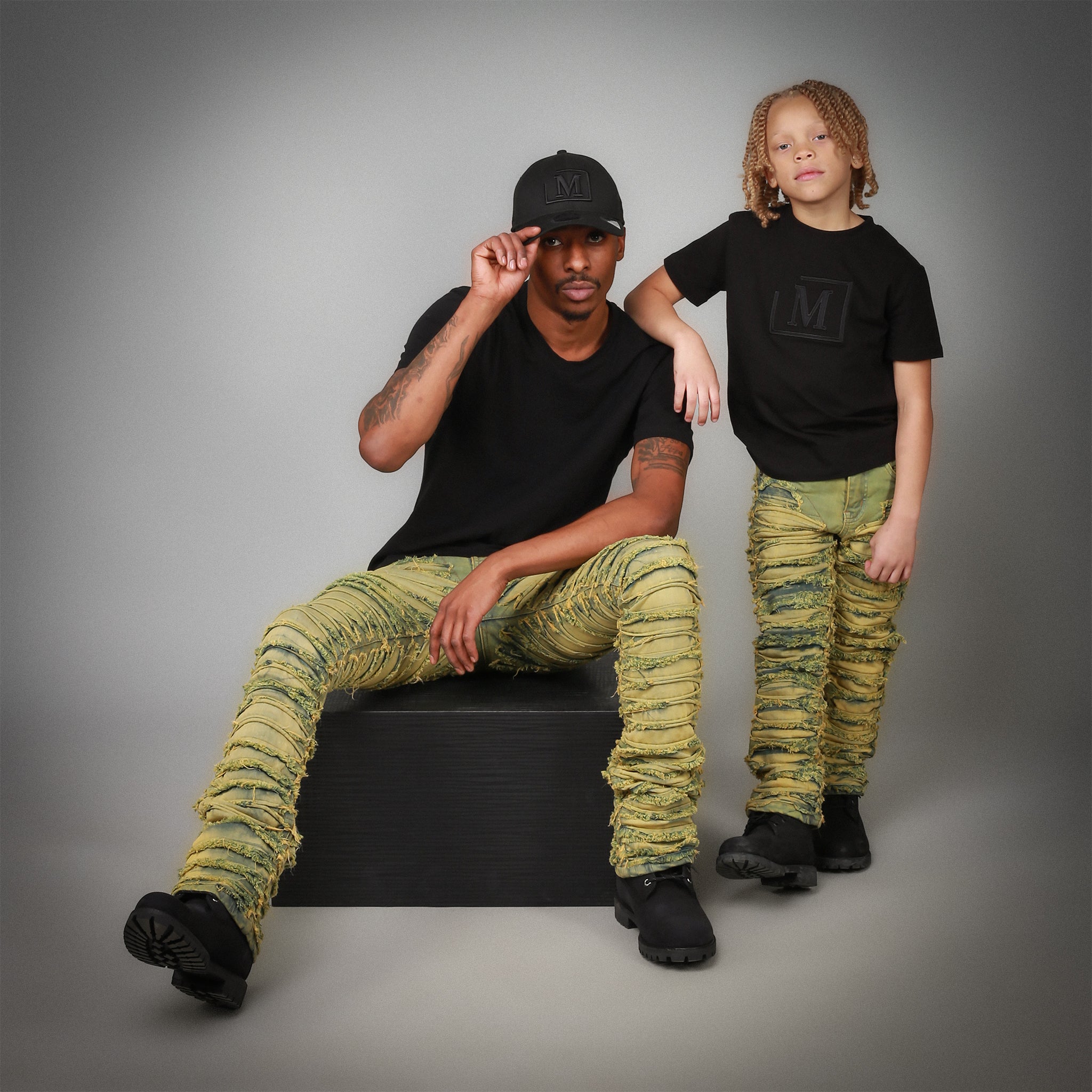 MDB Brand Men's Distressed Dual Color Stacked Jeans