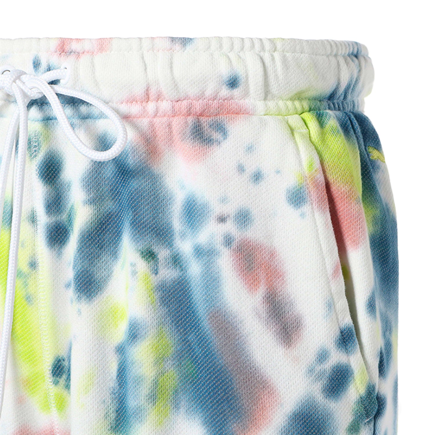 Pivot pants with a tie-dye dyed overall pattern print that creates a nuanced look. The tapered silhouette with the hem squeezed with rubber, the relaxed comfort of the soft sweatshirt fabric, and the high-quality design are attractive. You can't miss the details such as the original emblem that symbolizes the basketball series and the Puma cat stab attached to the back yoke.