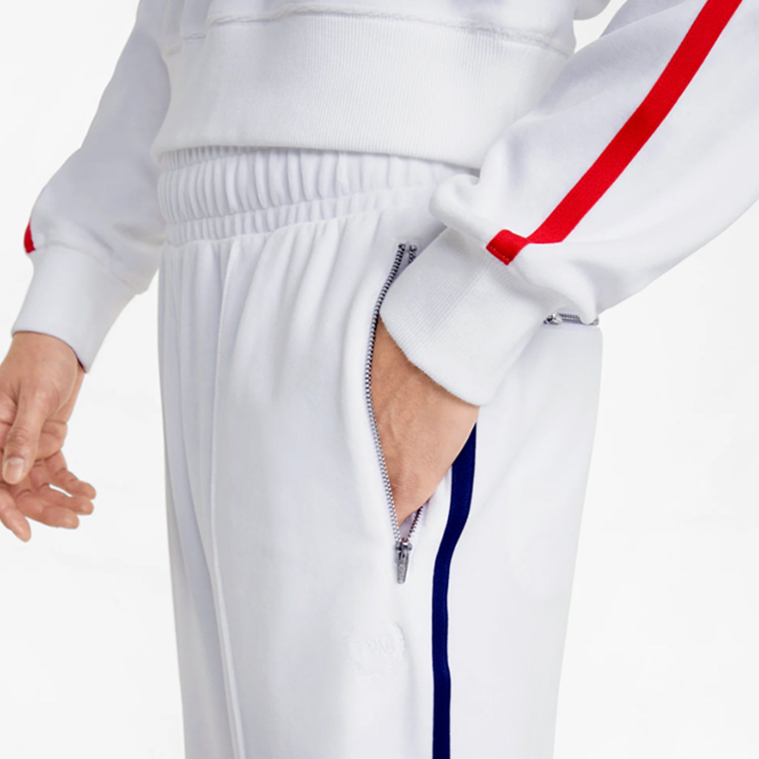 PUMA x TMC presents the newest installation of THE HUSSLE WAY – the series celebrating Nipsey Hussle’s entrepreneurial journey. The latest drop, the LL Collection, features a custom tracksuit which Nipsey and Groovey Lew created for the 2019 Racks in the Middle music video. With custom branding and an allover velour execution, these premium sweatpants are reissued today in honor of Nipsey’s legacy.