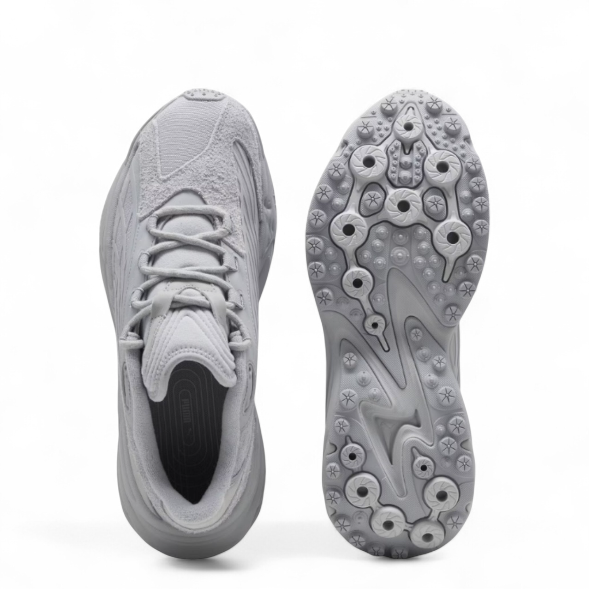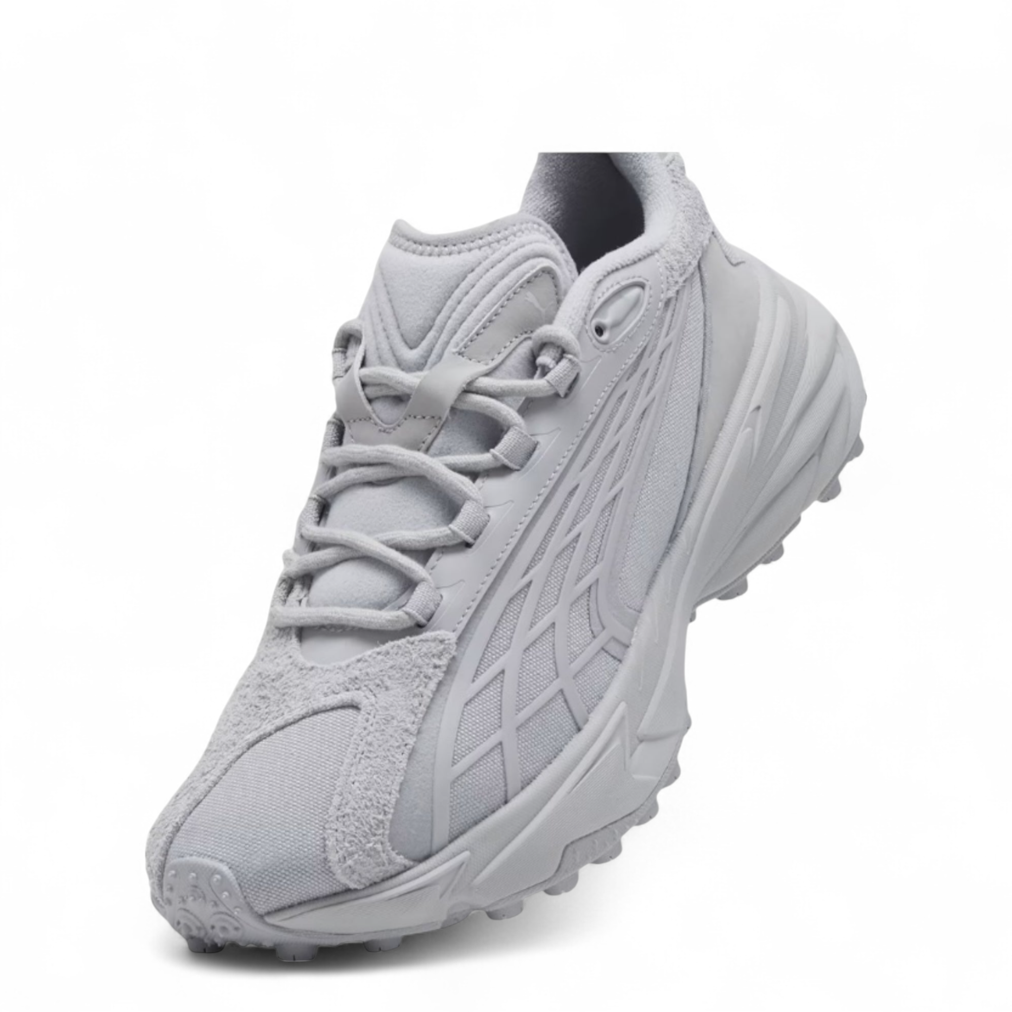Inspired by PUMA’s Icons of Speed, the Spirex is a new progressive runner made for bold streetwear choices. Its design synthesizes various performance archive elements to form a fresher Futro DNA. The outsole draws inspiration from runners’ spikes, while the upper is a reinterpretation of PUMA’s football and motorsport heritage. This premium execution features a textile base and 5D print Formstrip along with nubuck overlays which convey the premium focus of this one of a kind shoe.
