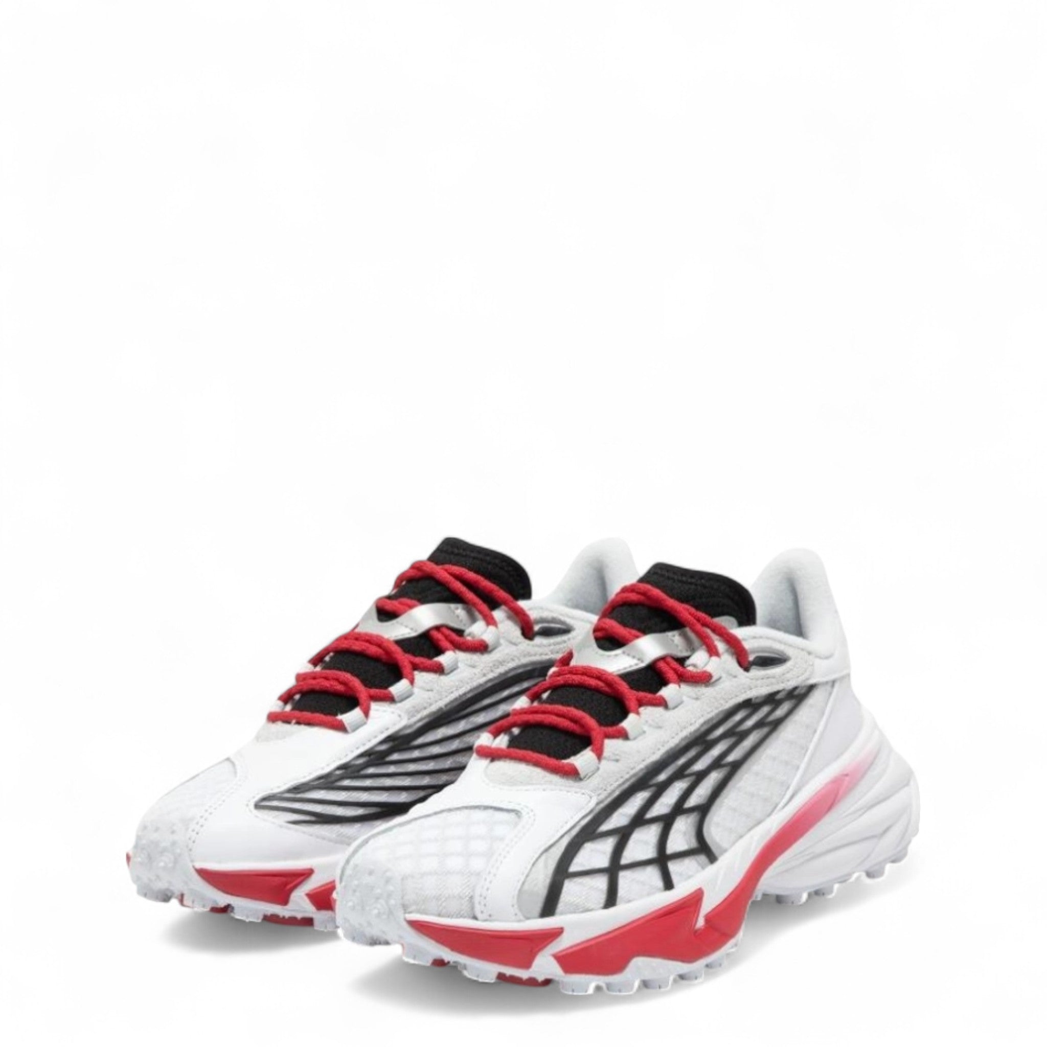 The Puma Women's Spirex Motogame offers a blend of style and function in a low-top silhouette. Crafted from premium leather with suede and synthetic overlays, it's both sophisticated and durable. With a secure lace closure and cushioned footbed, it ensures comfort. The rubber midsole and outsole provide excellent grip and longevity, while the suede heel cap showcases metallic Puma branding for a touch of sophistication.